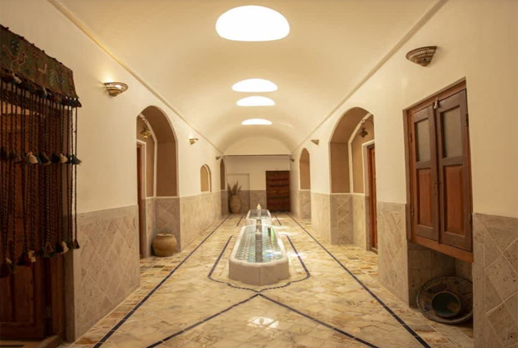 در ورودی هشتی خانه حنا میبایست کفشهای خودتان را تعویض نموده و کفشهای خود اقامتگاه را پوشیده و سپس وارد راهرویی میشویم که از نظر نقشه و طراحی در استان یزد تاکنون نداشتهایم